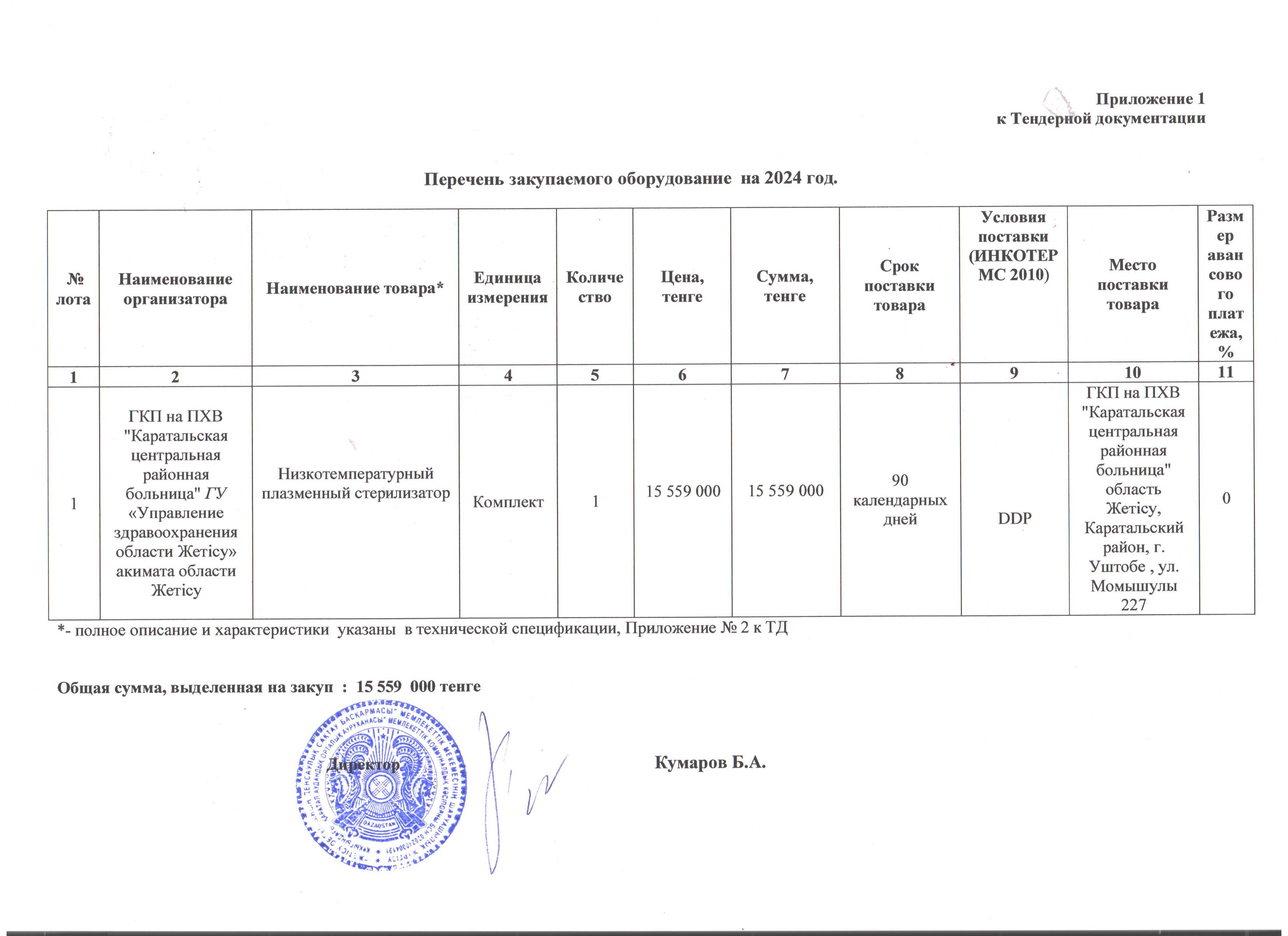Объявление № 25 о начале проведения закупа (Тендер) Приложение 1
