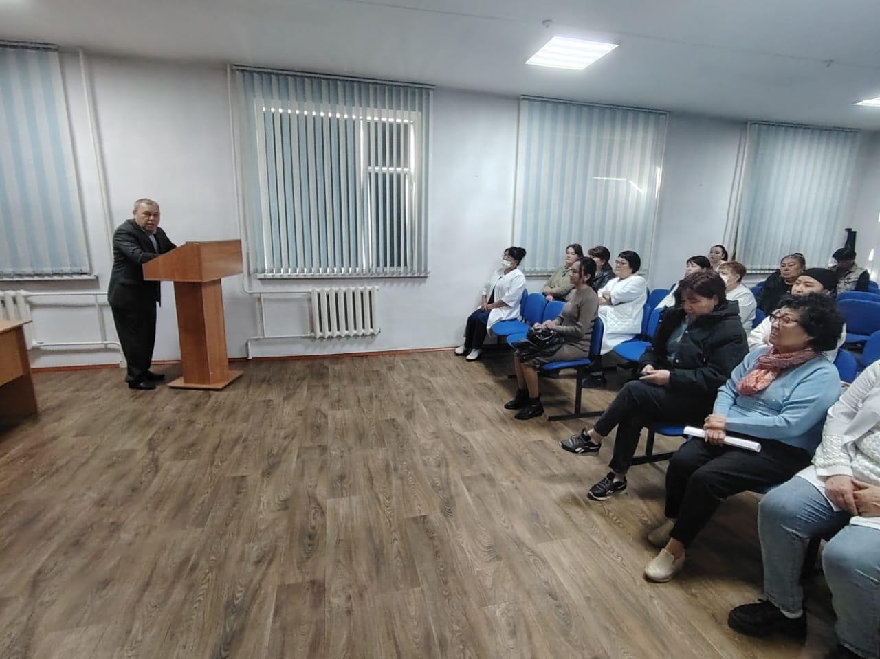 ГКП на ПХВ «ЦРБ Каратальского района» 14 октября 2024 года прошло общее собрание участием врачей и среднего медперсонала на тему «Медицина и коррупция». На собрание присутствовали заместитель директора по лечебной части Орынбаев С.Д. и заместитель директора МОМ Жуманов И.Б.